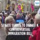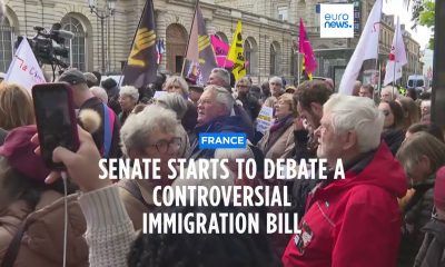 The French Senate started debating a hugely controversial immigration bill Monday that the government says will accelerate the process of deporting foreigners. READ MORE : https://www.euronews.com/2023/11/06/protest-as-french-senate-debates-contested-bill-toughening-immigration-laws...