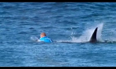 Australia’s triple surf champion Mick Fanning walked away shaken but uninjured after having a close-encounter with a shark … source